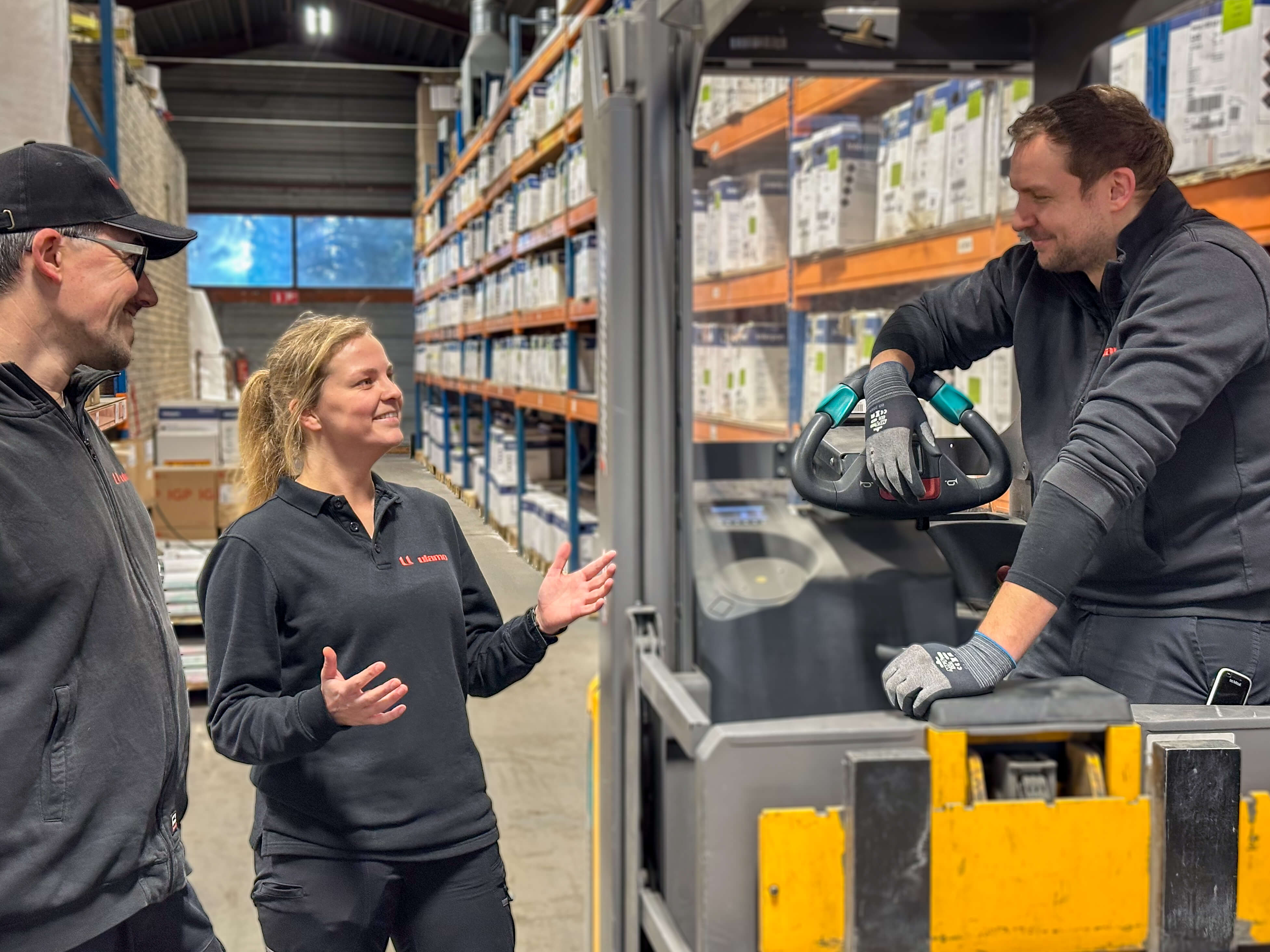 Over de rol van logistiek medewerker vertelt Minke enthousiast. “Dat is echt een spilfunctie binnen ons proces,” legt ze uit. Het werk speelt zich voor een groot deel af op de heftruck. Laden en lossen van vrachtwagens, producten verzendklaar maken en materialen pendelen tussen de twee productielocaties: het hoort er allemaal bij. “Alles moet op het juiste moment op de juiste plek staan. Als dat goed loopt, merkt bijna niemand het. Maar het is wél essentieel.”