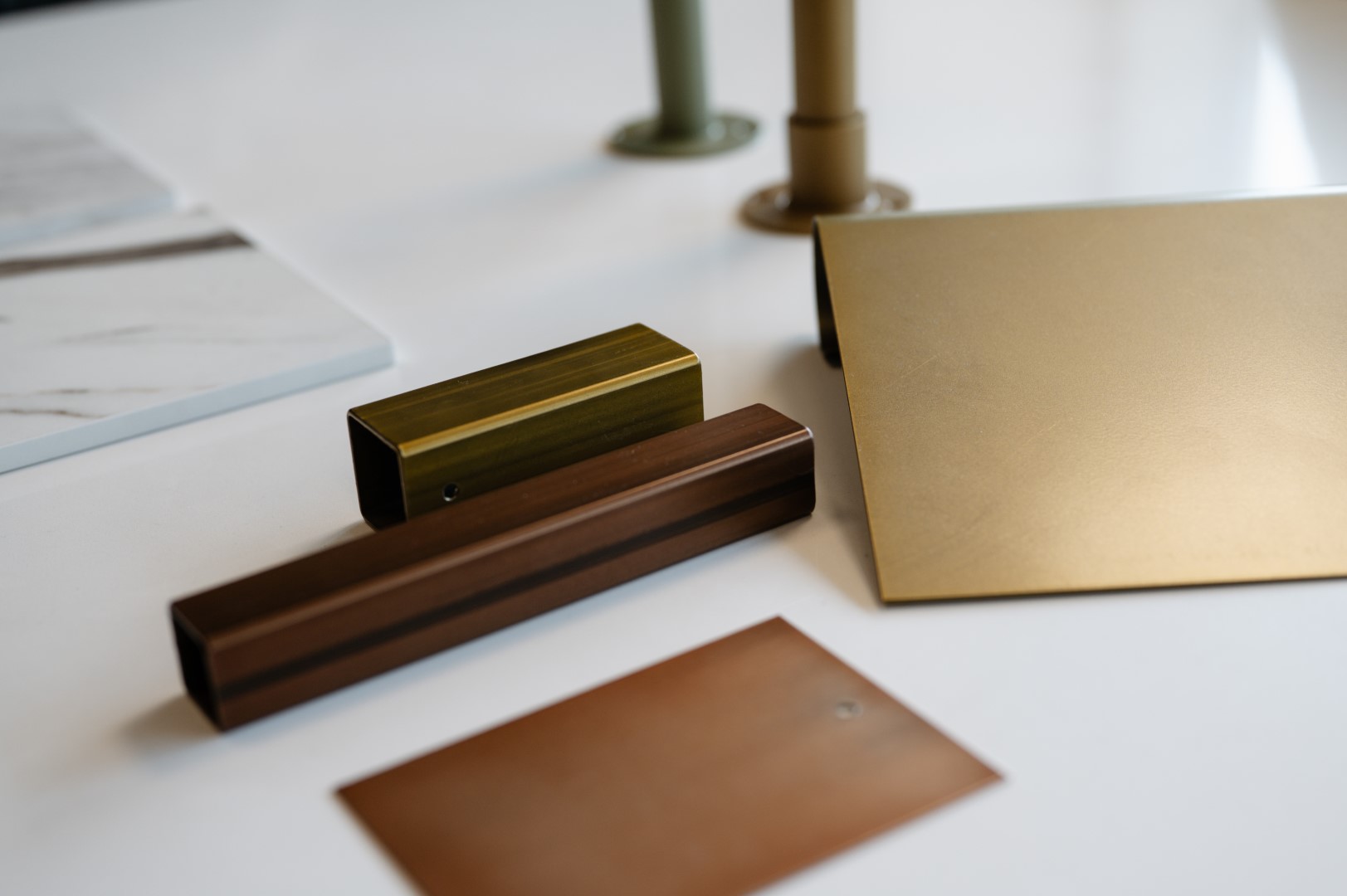 Bij TePe Metal worden kleuren niet zomaar gekozen. Ze ontstaan vanuit inspiratie, beurzen en gesprekken met interieurarchitecten. “We werken nauw samen met onze lakkerij en coating-afdeling. Zo kunnen we alternatieven ontwikkelen voor edelmetalen kleuren zoals koper, messing en goud: met hetzelfde luxegevoel, maar in een praktisch uitvoerbare vorm. Dat zien we nu terug in veel retail- én interieurconcepten.” Wat maakt kleur zo onderscheidend? Volgens Roos draait het om herkenbaarheid. “Kleur maakt sfeer. Merken en winkels willen zich onderscheiden en hun eigen toon zetten. Doordat wij het basismateriaal onderdeel maken van de kleurbeleving, creëren we producten met karakter.”